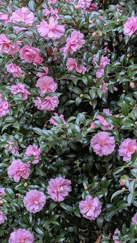 頬染めるようなピンクのサザンカ、 花言葉はーーー『素直な愛』。