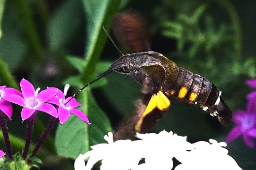 口吻を伸ばして器用にペンタスの蜜を吸っているところを撮りましたので、紹介します。