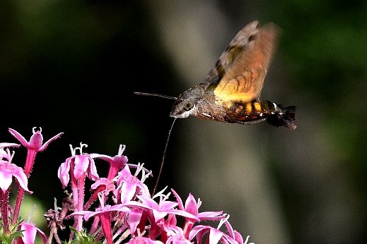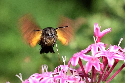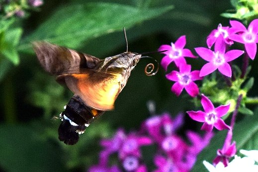 すると、すんなりとWikipediaに案内されて、英語名はHummingbird hawk-moth(ハチドリ スズメガ)で、和名はホウジャクというスズメガの一種であることが判りました。