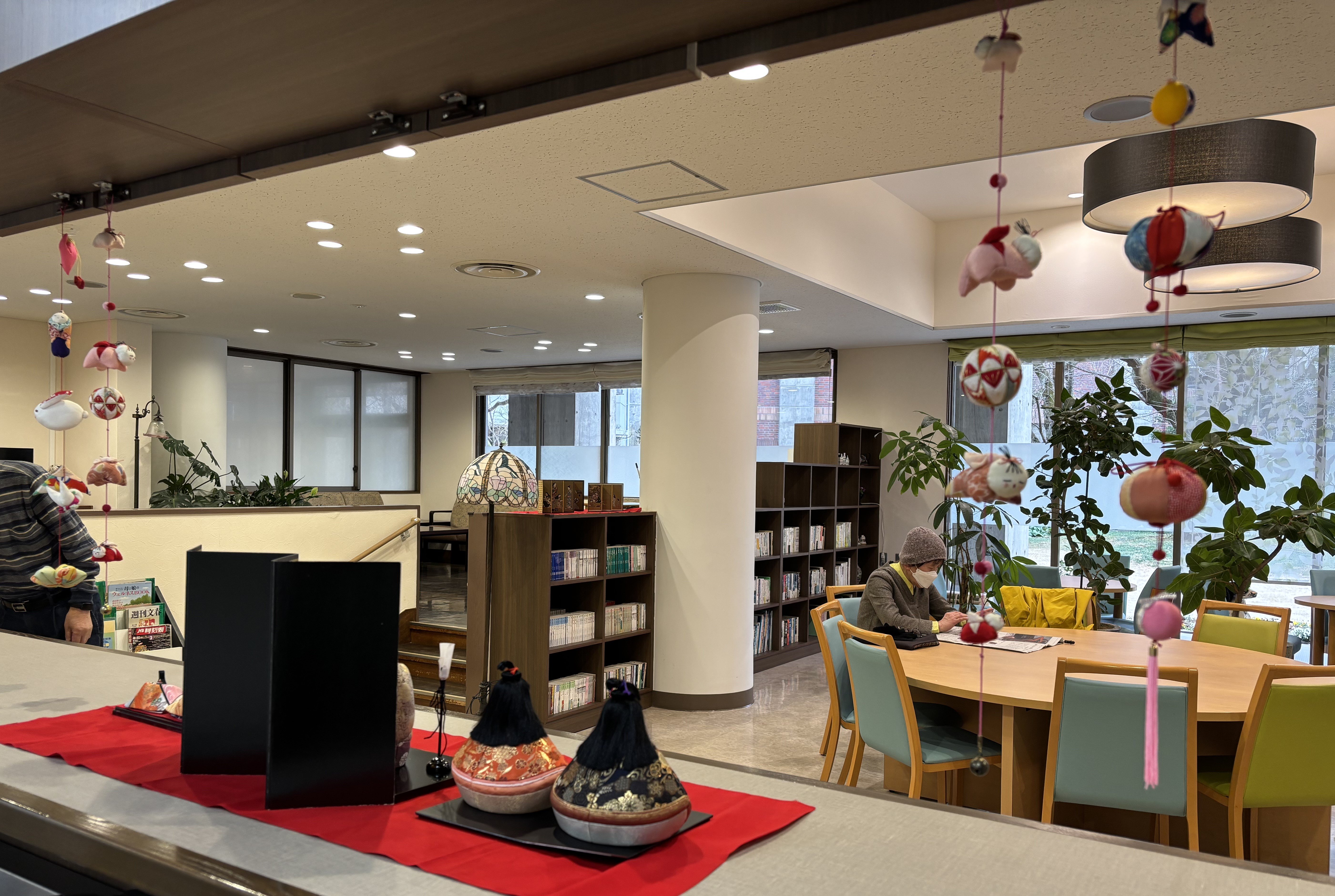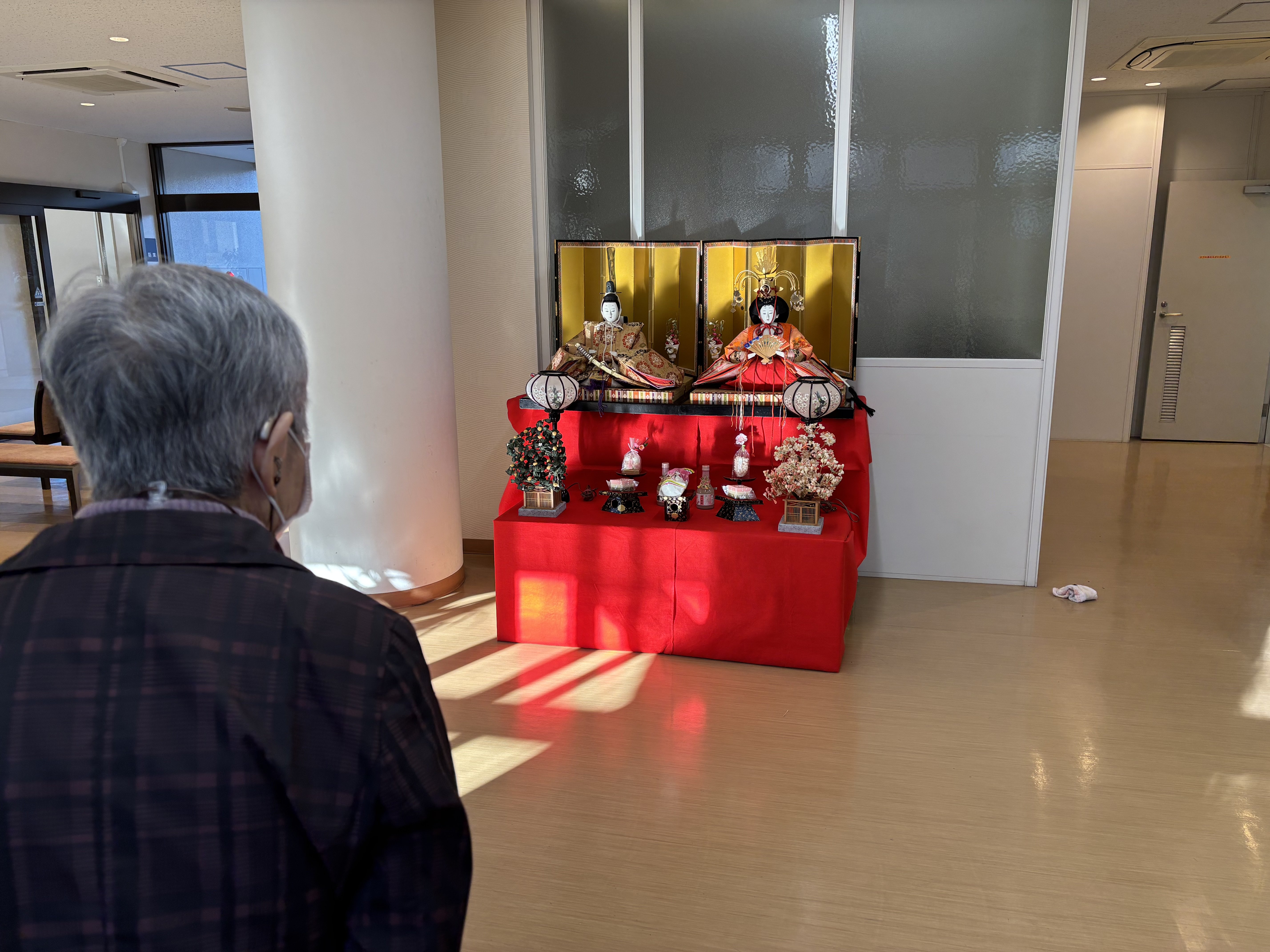 毎年、この時期になると、ゆうゆうの里のラウンジ前にはたくさんのお雛様が並びます。