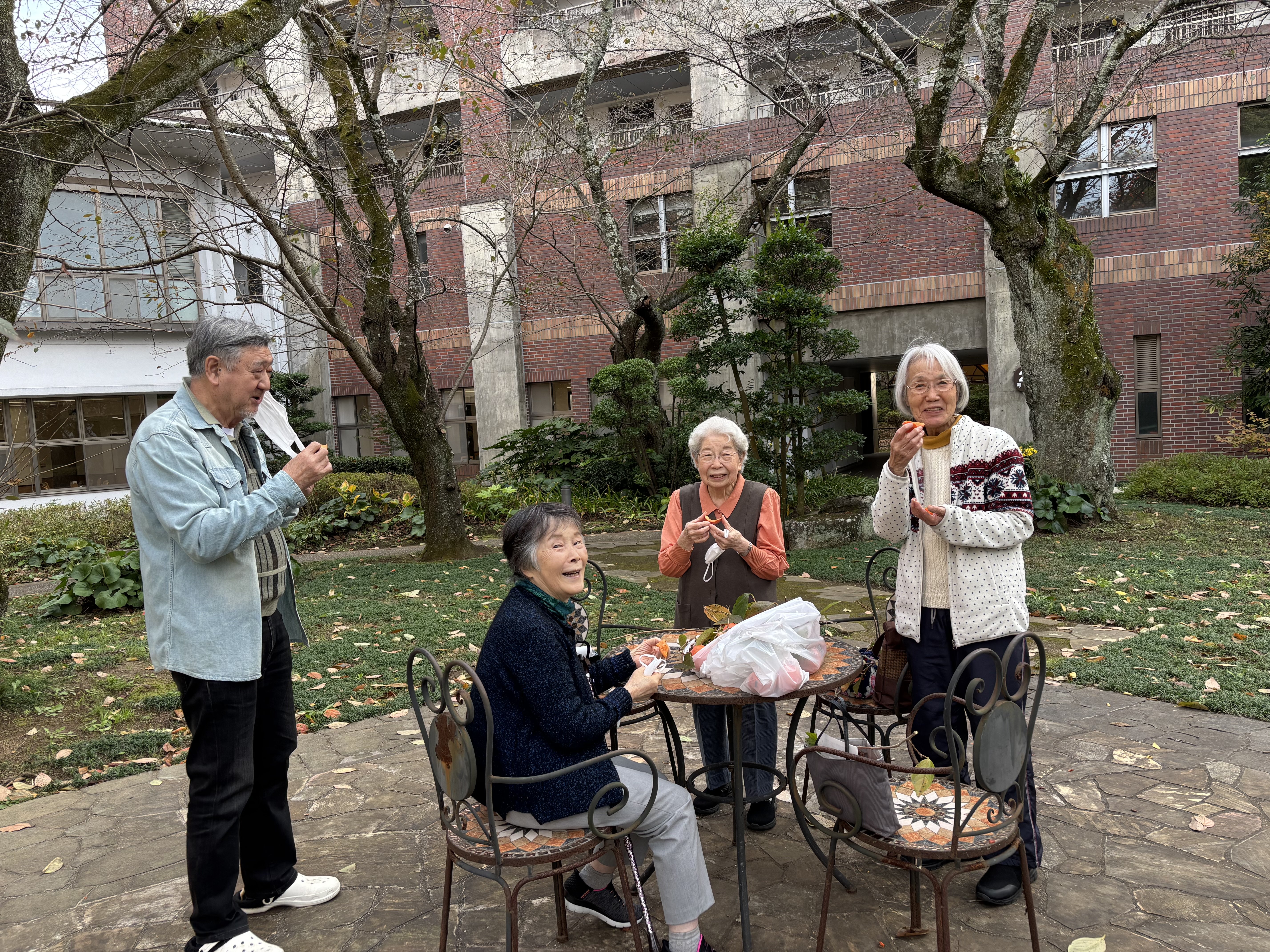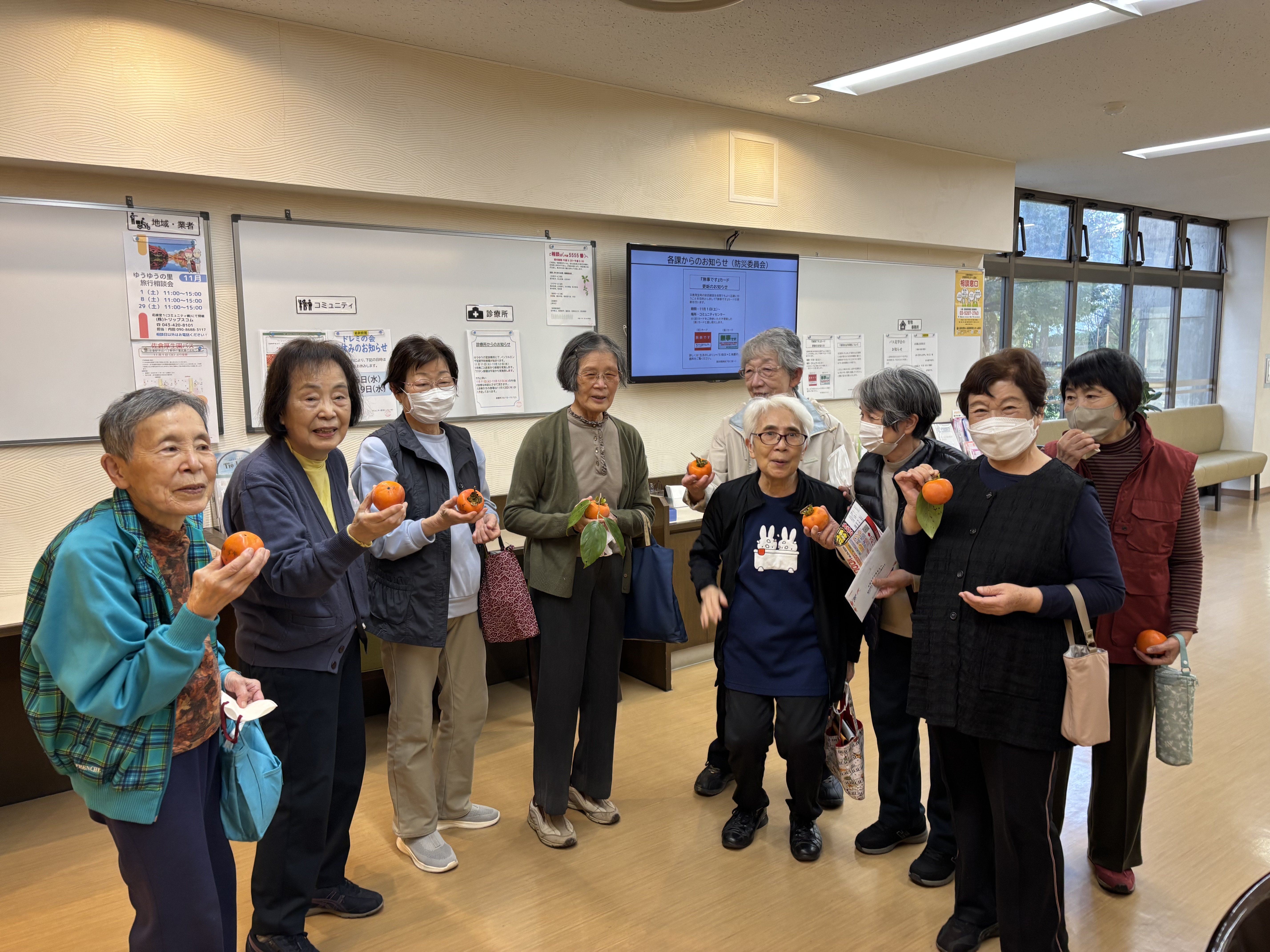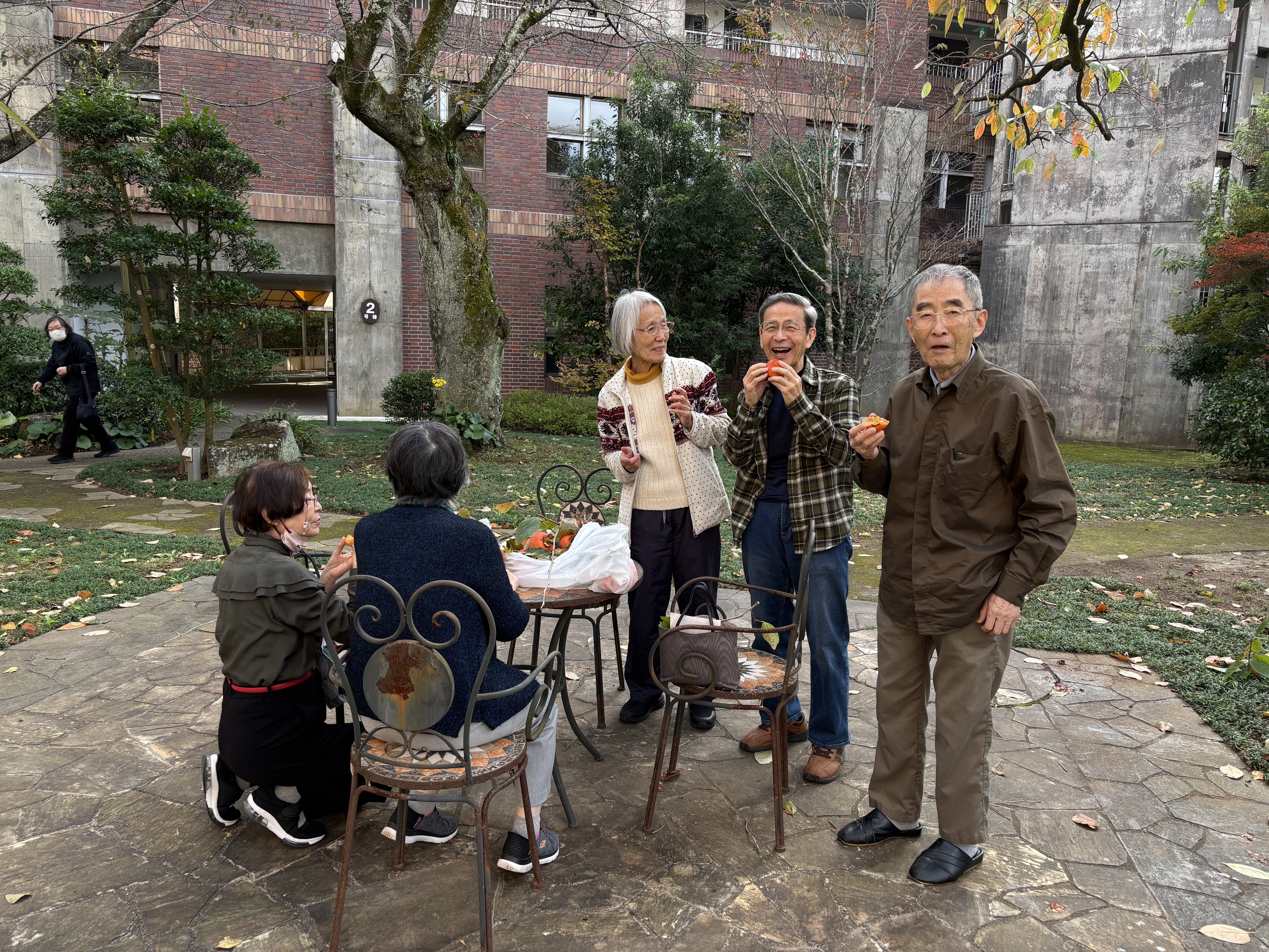 「ほら、食べてみて。美味しいでしょ?」「え~?渋柿じゃないんだ。甘いね~」