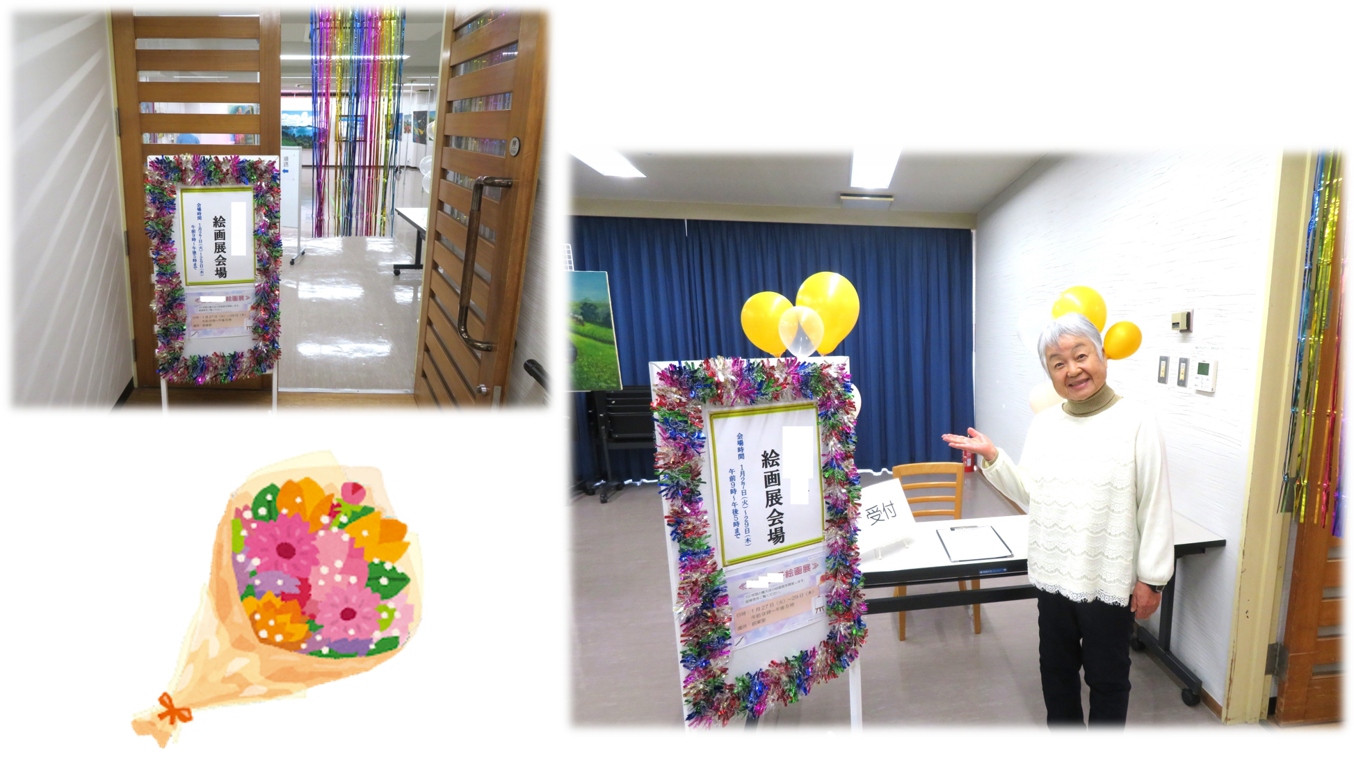 「今回の絵画展を開催するにあたり、皆様のあたたかいご支援と職員さんの協力に感謝申し上げます。」